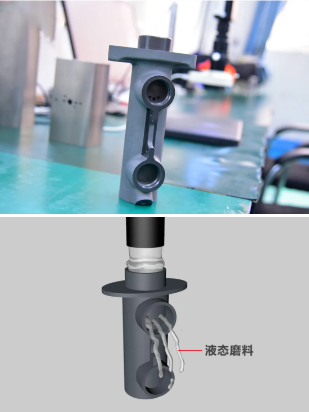 通過特殊的磨料流擠出拋光設(shè)備擠出磨料,使用半流體磨料在相對固定的空間流動,通過內(nèi)部或表面的處理,從而達到拋光和去毛刺作用的特殊加工,加工表面粗糙度可達 ra0.01 微米;